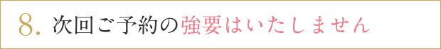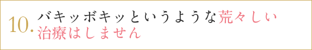 症状をお聞きして治療計画、ゴール設定、来院頻度の提案はさせていただきますが、強引・無駄にご来院を強要するようなことはいたしません。