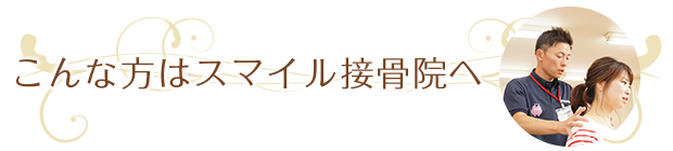 現在なかなか症状が改善されず悩んでいる方、怪我が多くてスポーツを思い切りできない方、身体も心も笑顔になれますようにスマイル接骨院にお任せいただけませんか?